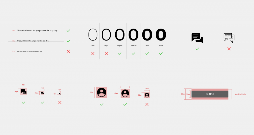Things appear in VR much blurrier than that on 2D screens, so light and fonts with strokes should be avoided. VR better works with sans typefaces and with font weights from medium to bold. Minimum readable font size should be 24px from the distance of 1 meter and line heights also should be wider.