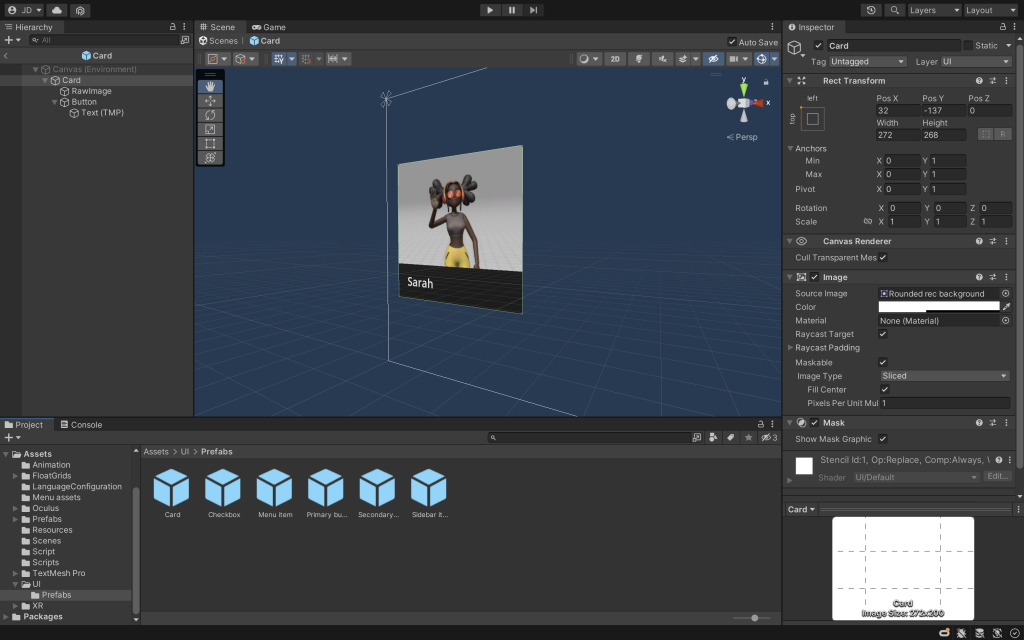 Transferring Figma design and components to Unity requires a learning curve. I used TextMeshPro to define typography styles, and Unity Prefabs to define design components. Each component in Figma is a Prefab in Unity following the same style settings and measurement in pixels.